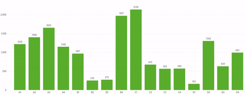 이 데이터세트는 데이터가 들어오는 대로 아래와 같이 바로바로 반영해줍니다. 해당 예시는 제가 물류창고 재고현황 보고서 샘플을 만들면서 개발한 차트입니다. 창고별 재고수량 현황을 나타내고자 하는 것이 목적이죠.