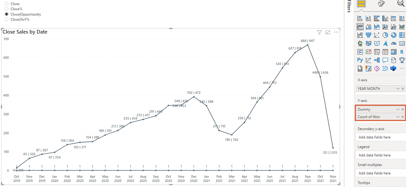 | [Close] | Count of Won의 기본 산출 값 |