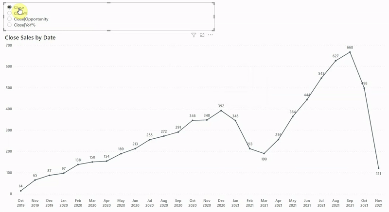 이제 슬라이서를 하나 생성하여 차트의 데이터 라벨이 바뀌는지 확인합니다.