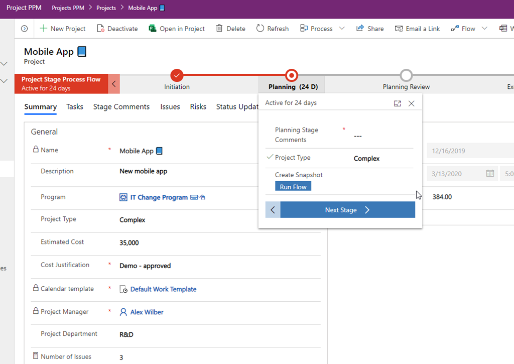 3. Business Process Flow : 데이터를 정의된 로직으로 다룰 수 있는 화면입니다.